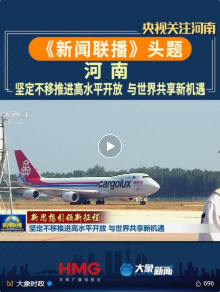 央视《新闻联播》关注郑卢“空中丝绸之路”