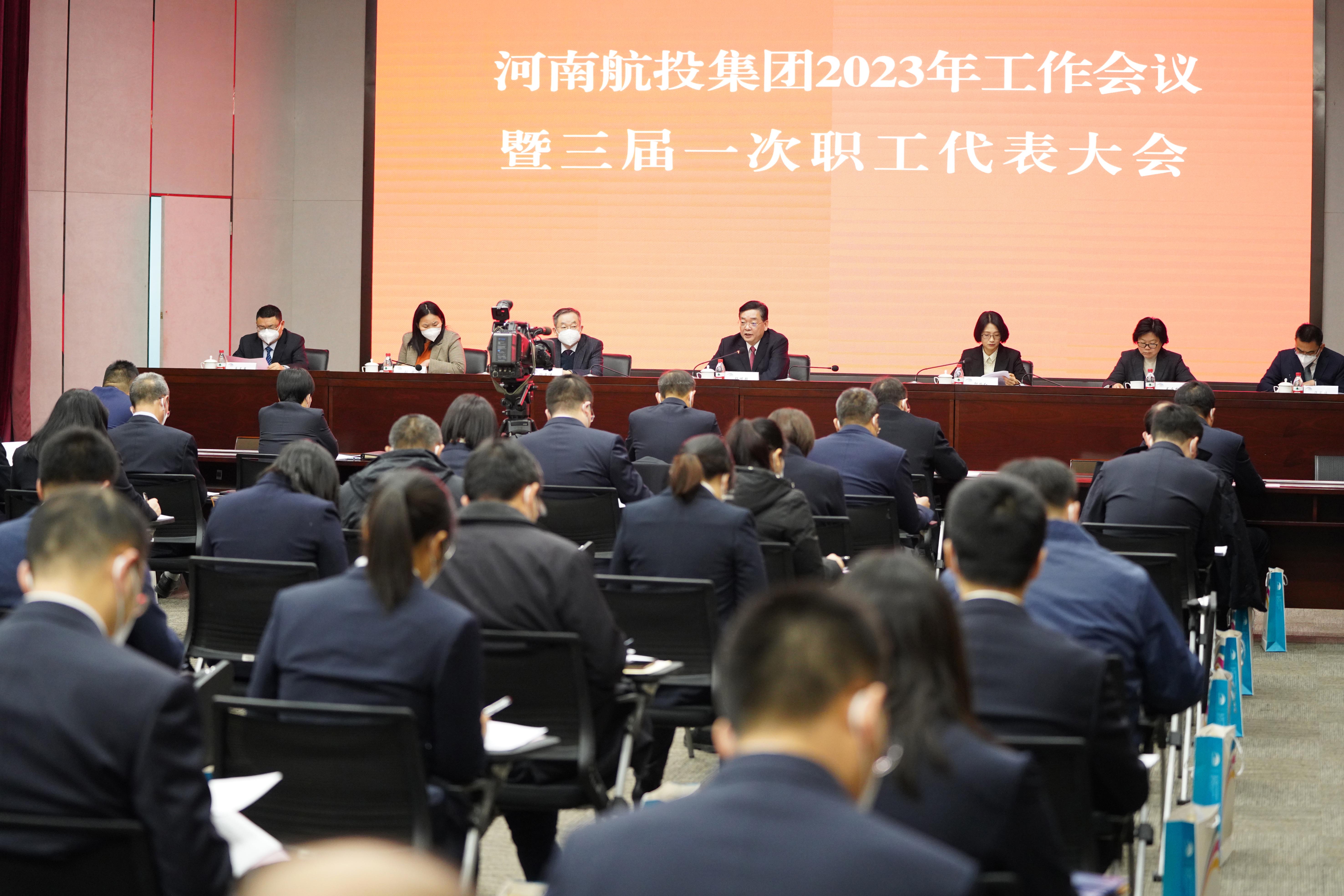 1月29日上午,河南航投集团2023年工作会议暨三届一次职代会在航空经济服务中心召开。会议传达贯彻了党的二十大及中央、省委经济工作会议精神、省“两会”精神,总结回顾了2022年工作,科学分析当前形势,安排部署今年重点工作。集团党委书记、董事长张明超在会上作《在新起点上开创河南航投集团高质量发展新局面》工作报告,党委副书记、工会主席郭艳红主持会议,领导班子其他成员、中层管理人员和部分员工代表参会。