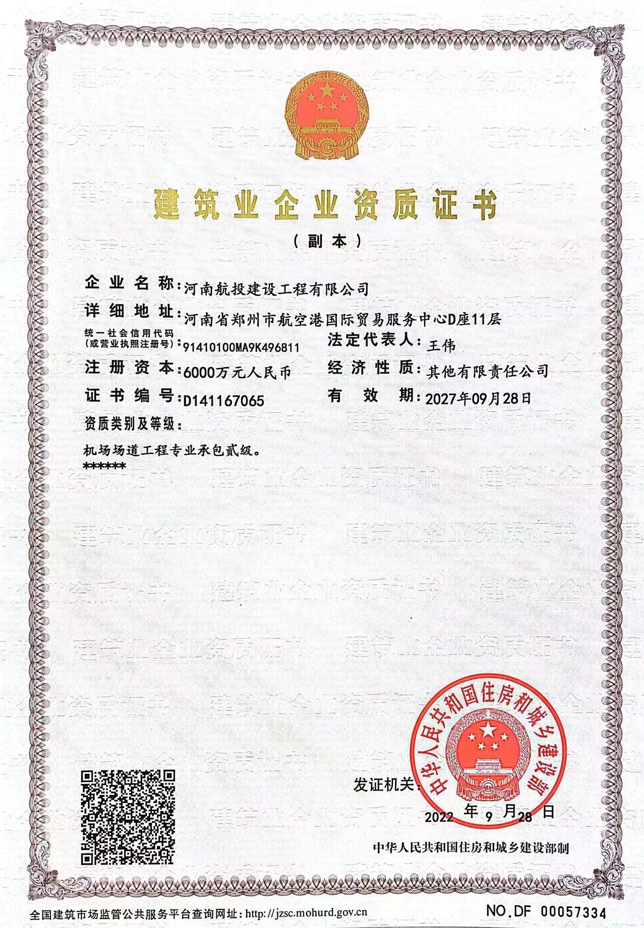 航投建工由河南航投集团旗下河南航投航空基础产业发展有限公司与贵州省场道工程有限公司共同出资成立。2022年9月28日,航投建工成功取得机场场道工程专业承包二级资质;同年12月8日通过河南省住建厅各项审核,取得《建筑施工企业安全生产许可证》,完成参与市场竞争的全部前置条件;12月23日,被评为郑州航空港经济综合实验区建筑业重点培育企业,为施工总承包及多项专业资质的取得打下坚实基础。